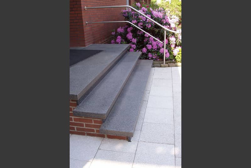 Treppe aus grauem Granit in Abstimmung zur Haustür.