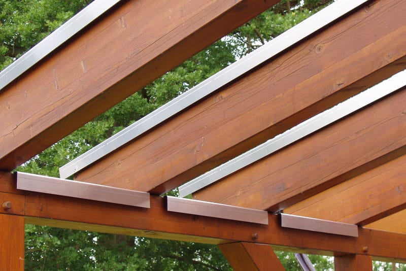 Witterungsschutz Witterungsschutz: Durch das abgekantete Aluminiumprofil wird verhindert, dass das BSH (Brettschichtholz) verwittert – konstruktiver Holzschutz!